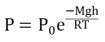 Mas quando falamos da pressão atmosférica no ar, a equação acima só será válida se estivermos falando de baixas variações de altura. Para variações maiores, a coisa se complica já que a temperatura E a densidade do ar irão se alterar conforme aumenta a altitude. Uma equação que se aproxima mais da realidade, no caso atmosférico, é mostrada a seguir.
