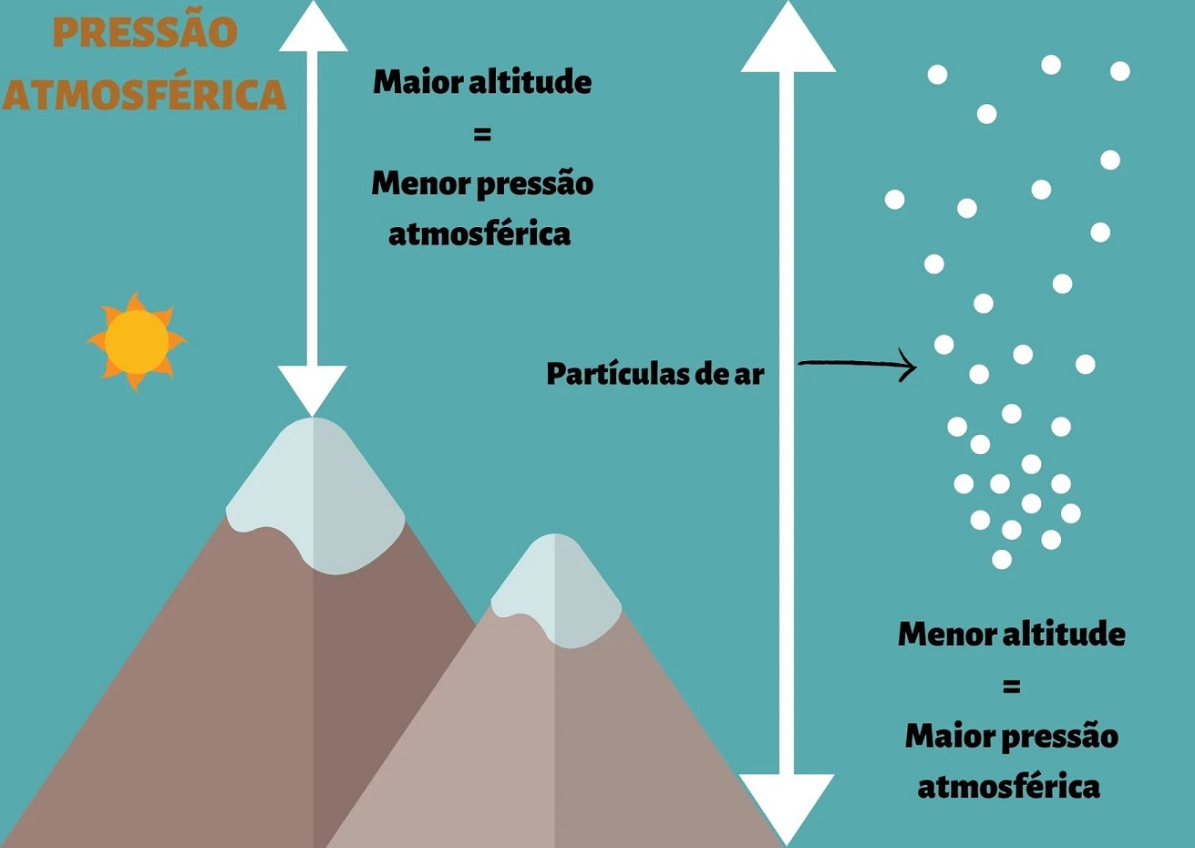 A pressão atmosférica é a força exercida pela atmosfera da Terra sobre a superfície terrestre e objetos nela presentes. Ela é causada pelo peso do ar acima de uma determinada área e varia em diferentes altitudes e locais. A medida que subimos na atmosfera a pressão atmosférica diminui devido a rarefação do ar e consequente redução da densidade.