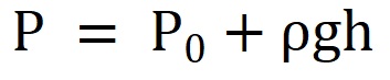 onde P0 é a pressão ao nível do mar, ρ é a densidade da água (aproximadamente igual a 1000,0 Kg/m³), g é a aceleração gravitacional (aproximadamente 9,80 m/s²) e h é a profundidade. Como a densidade da água do mar se mantém razoavelmente constante, mesmo a grandes pressões, esta equação será válida na maioria dos casos. Por exemplo, usando esta equação podemos ver que a uma profundidade de apenas 10,0 m a pressão exercida pela água já será o dobro da pressão exercida ao nível do mar.